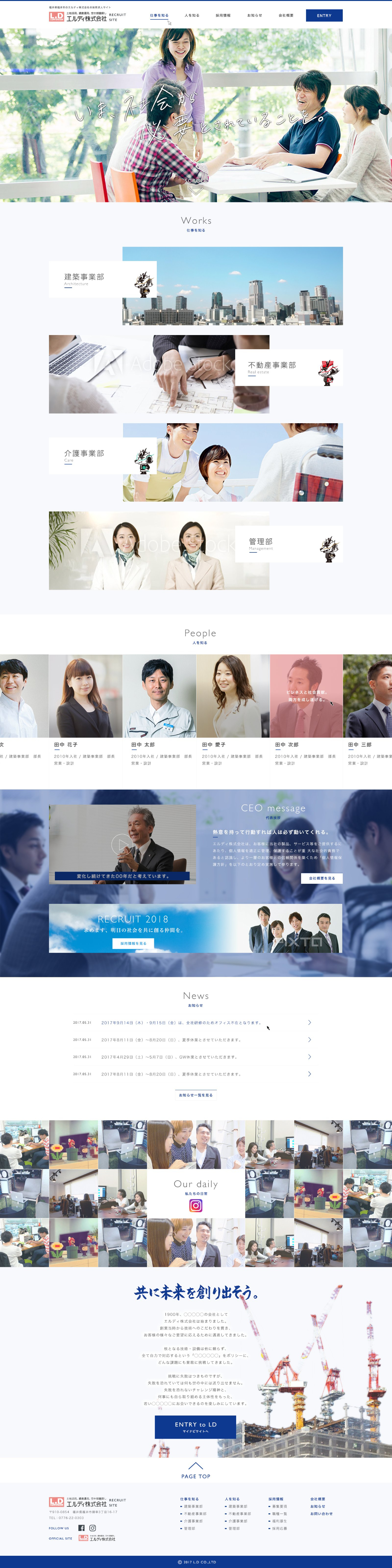 建築・不動産・介護事業会社 コーポレートサイト - エルディ株式会社様 コーポレートサイト作品の狙いや目的:人材採用強化のためのホームページリニューアル作品のコンセプトやポイント:爽やかでクリアーな企業イメージを表現したデザイン制作時間:25時間(デザイン)担当:デザイン, コーディング