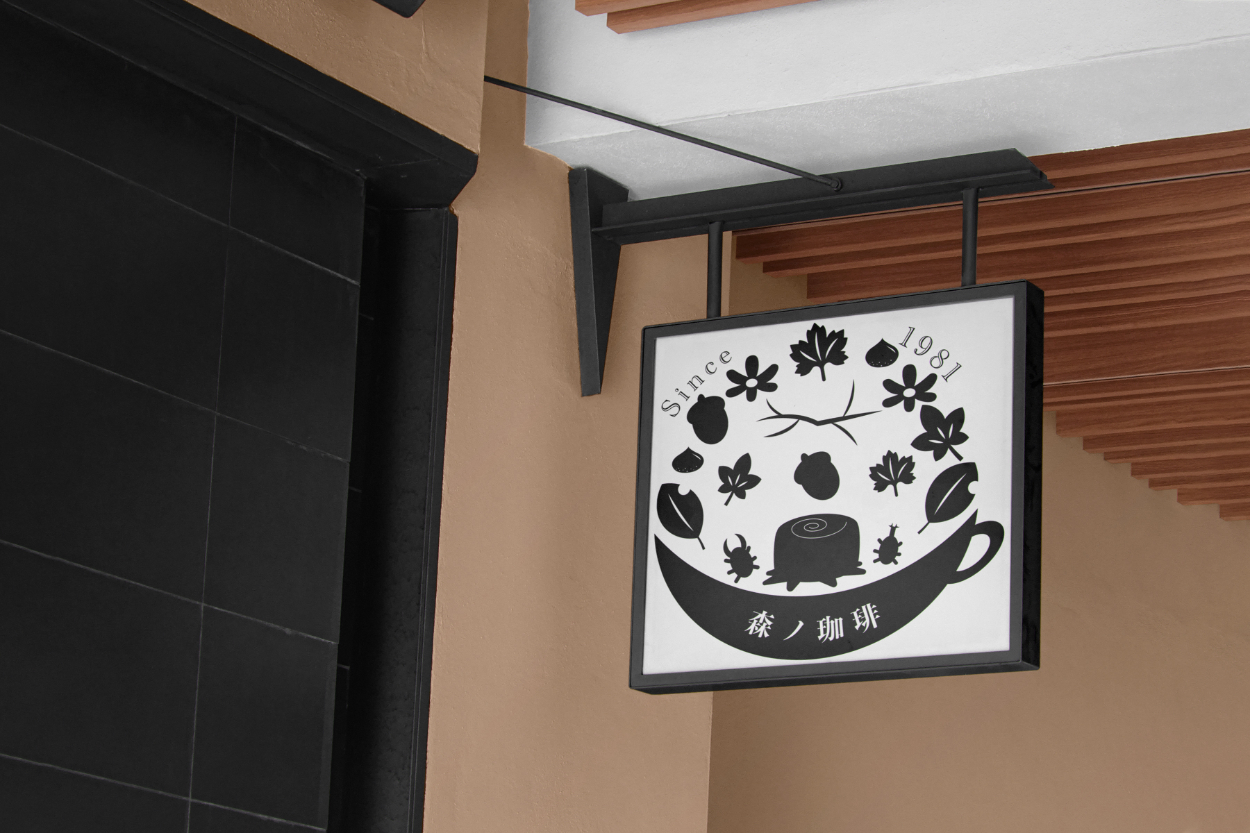 軽井沢の奥地、夏の木漏れ日が爽やかに降り注ぐ涼しげな森の中。風に揺られる木々の音と鼻の奥に残る珈琲の香ばしい香りを纏いひっそりと佇む古民家カフェ。地元では知る人ぞ知る名店。 という設定のカフェのロゴを制作しました。