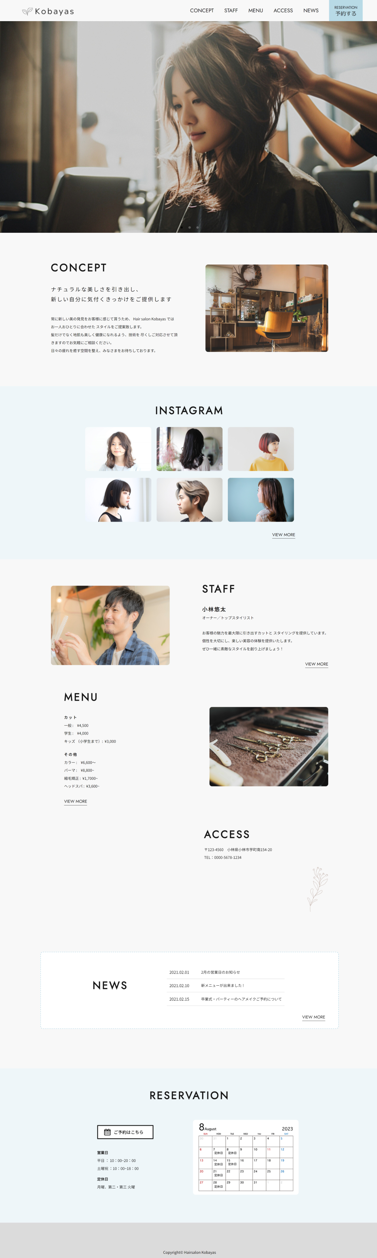 新規顧客を開拓するために、Instagramを使用していたが、載せられる情報に限りがあったり、予約の導線がDM、美容室専門のWebマガジン予約フォームからのみのため、webサイト制作をお願いするに至った。
