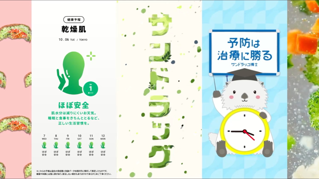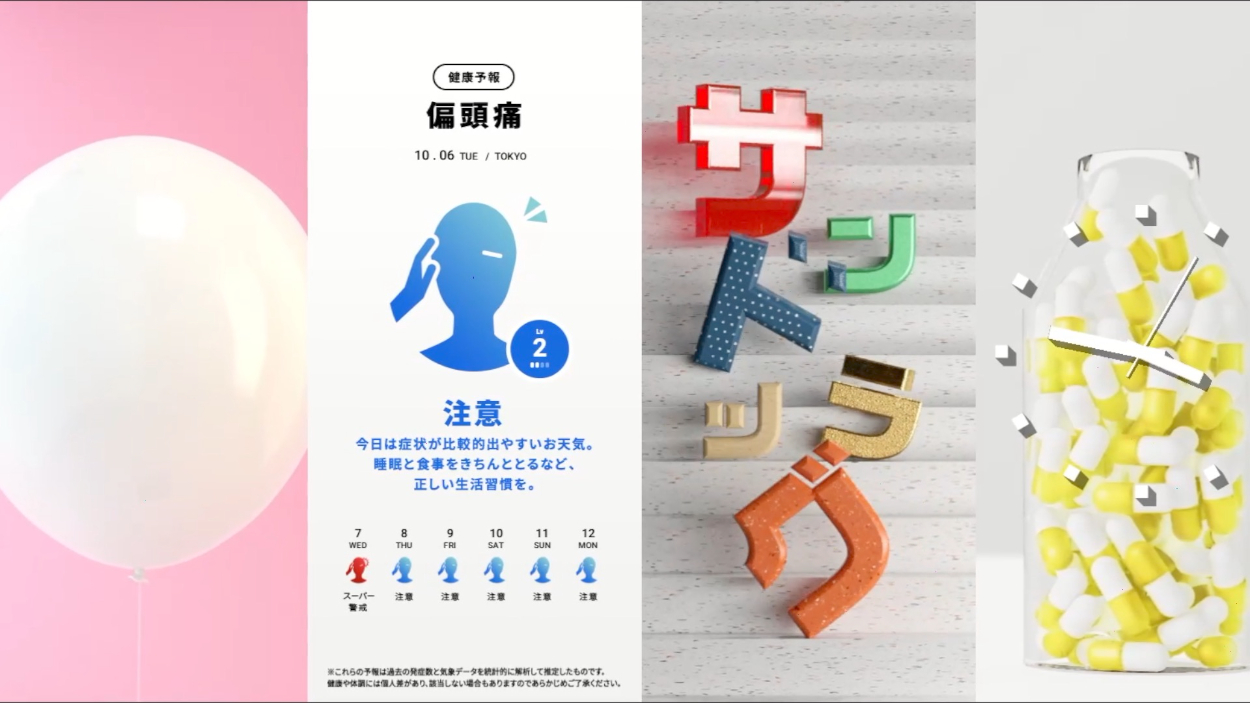 For the content to be shown, we focused on "clocks" that are commonplace in the bustle of the city. The impressive visuals are a combination of various "artworks" on the theme of "health and beauty" provided by SUNDRUG CARER and "health forecasts" that present the effects of weather and environmental changes on beauty and health based on academic evidence (biometeorology) as a means of providing counseling and information. The time keeps ticking in stores.
