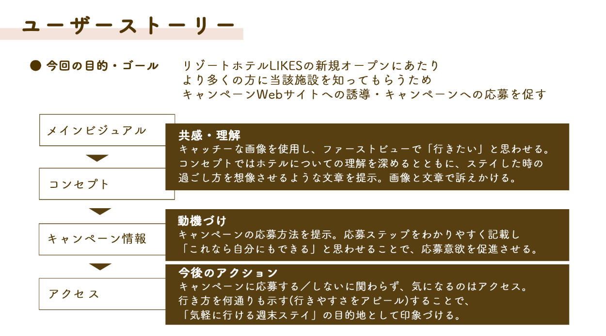 ターゲットとするペルソナがどのようなサイトであればホテルを訪れたいと思うのか、またいかにキャンペーン参加へのハードルを低くするかを考えて設計しました。