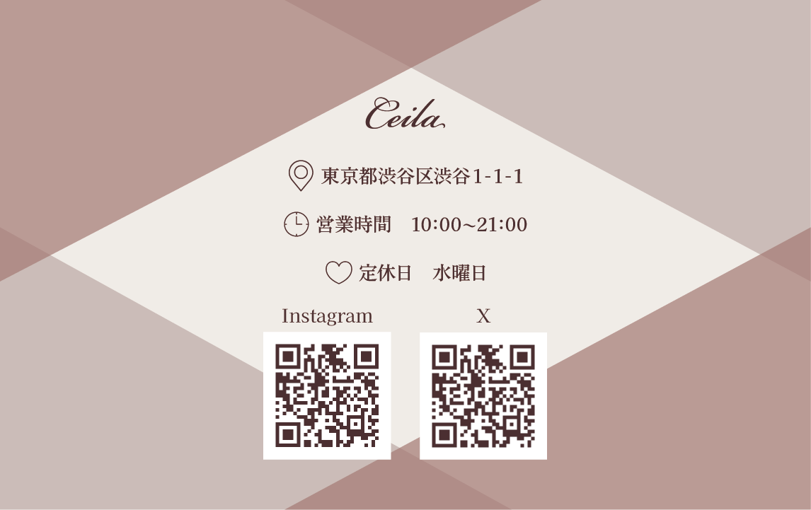 【自主制作】美容室のショップカード yui デザイナー・マーケター・ライター OVERVIEW 以前制作した美容室のWEBサイトを参考に制作しました。 YEAR 2024 表裏イメージ・女性らしい・友人に渡したくなるようなおしゃれなデザイン・お財布に入る、名刺などと同じサイズ感・QRコードを使用してSNSにすぐ飛べるようにしました