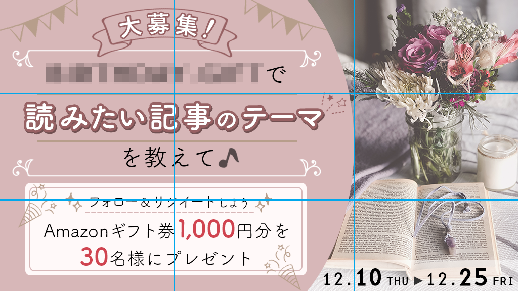 ・大募集!→見出し(読みたいテーマ)→小見出し(Amazonギフト券…)の順で目に入るようし、最後に日付が目に入るようにそれぞれ強調