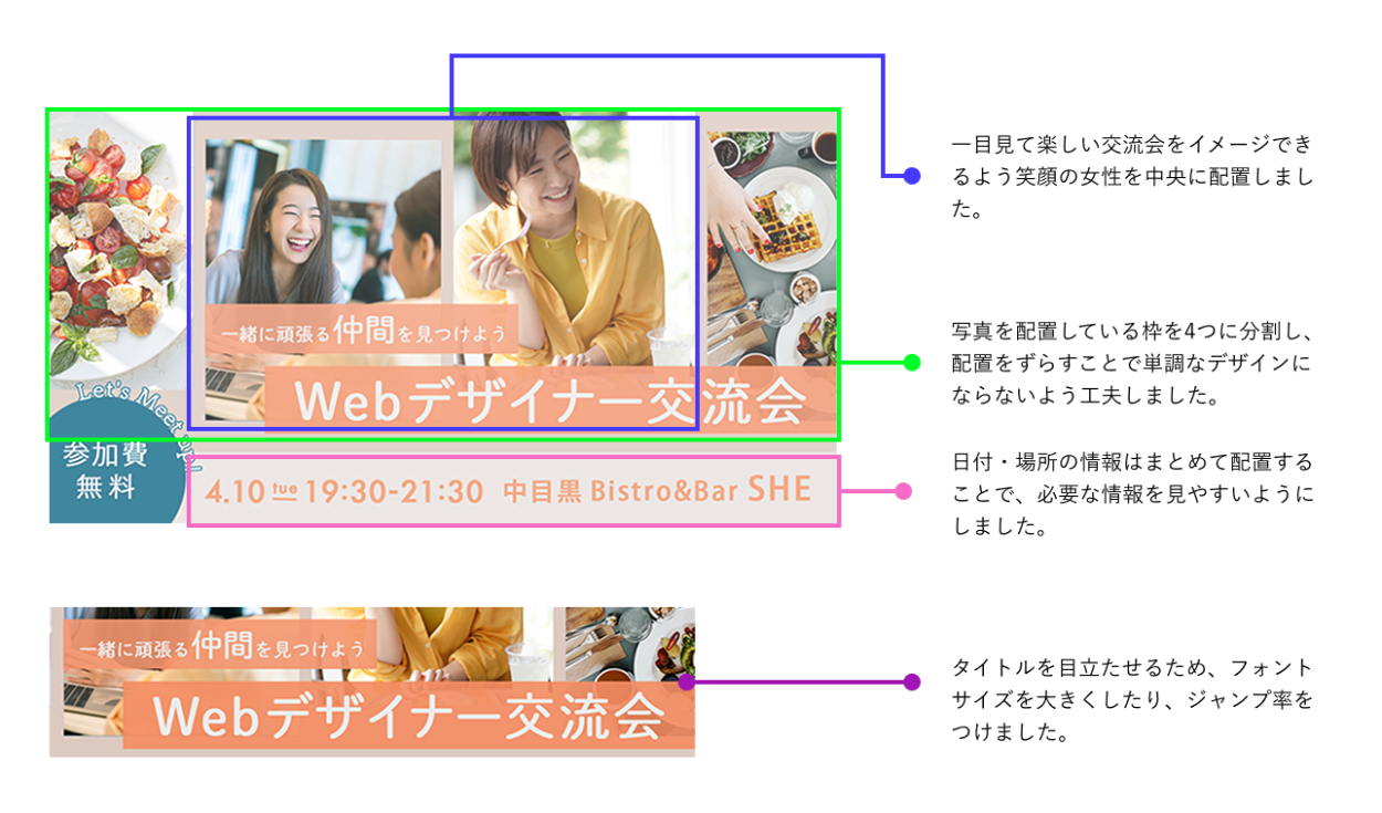 SHElikesの課題でバナー制作に取り組み、制作した際の工夫ポイントをまとめました。【制作期間】3時間 【使用ツール】Photoshop