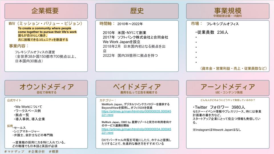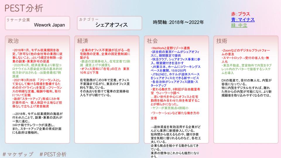 自分自身がレッドオーシャンであるシェアオフィス業界で働いており、その中でも特に知名度の高いWeWorkは、どのような成長要因があるのか、突き詰めて考えたいと思ったからです。