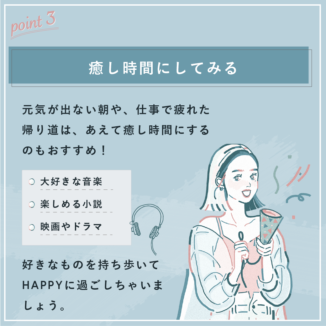 通勤時間だけど楽しい雰囲気を出せるように、手書きのゆるめイラストを追加しました。