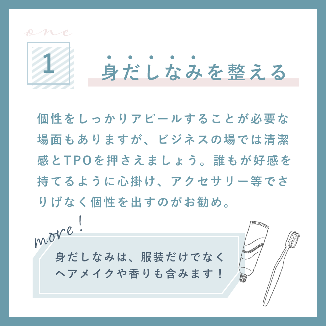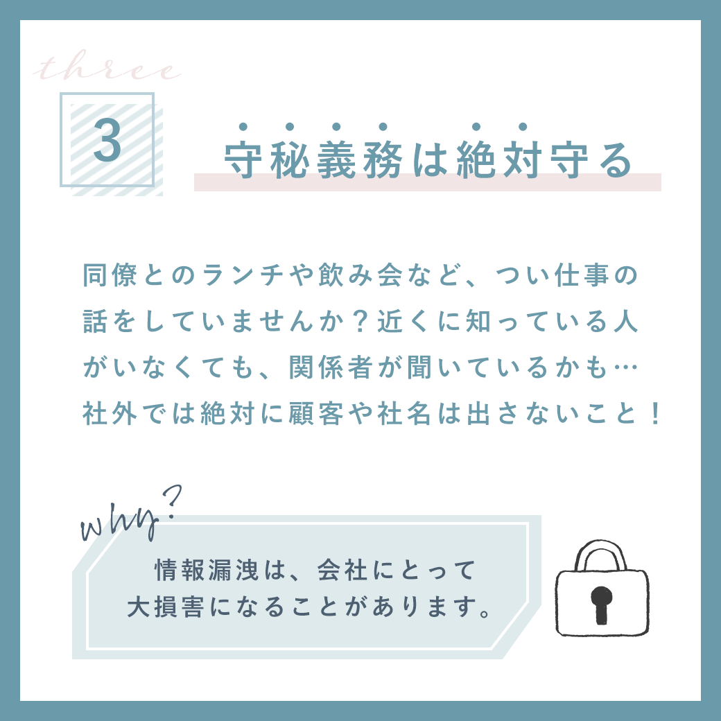 - 記載内容 :タイトル提供「知っておきたい社会人のマナー3つ」表紙・文字フォント・使用カラーの提供あり。内容と装飾は自己にて作成、イラストはフリー素材を使用。