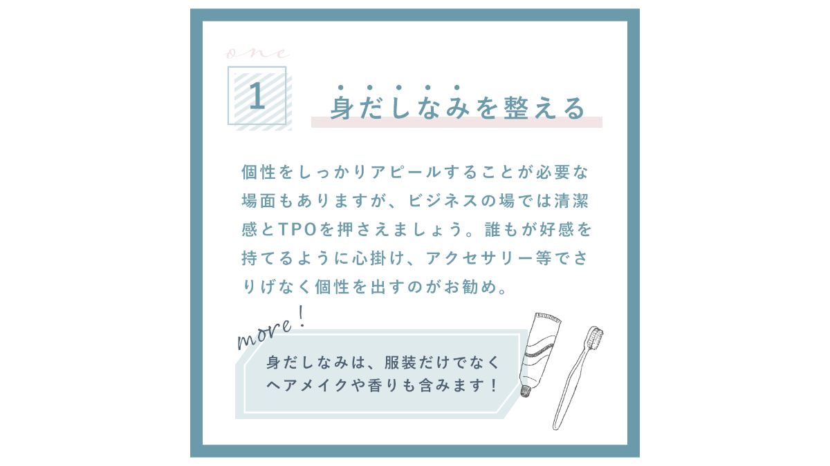 - ターゲット・設定 :20~30代の働く女性。仕事もプライベートもどちらも充実させたい。