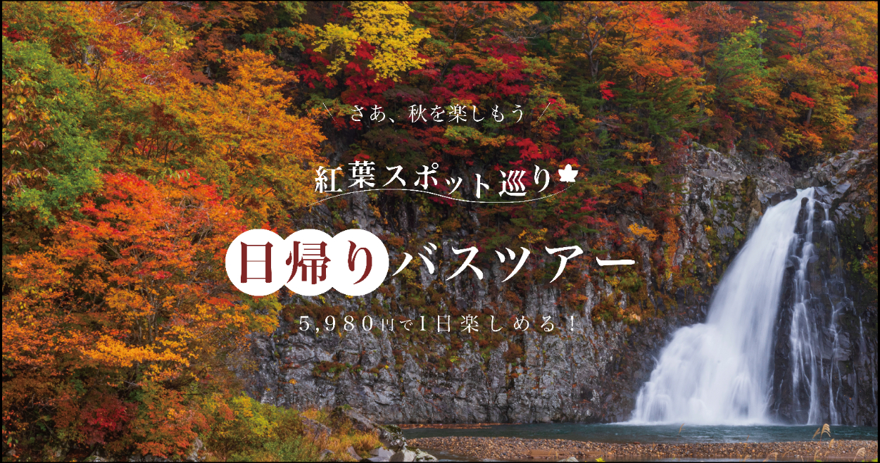バックの紅葉のイメージを損なわないように、バスツアーへ誘導できるようにする。