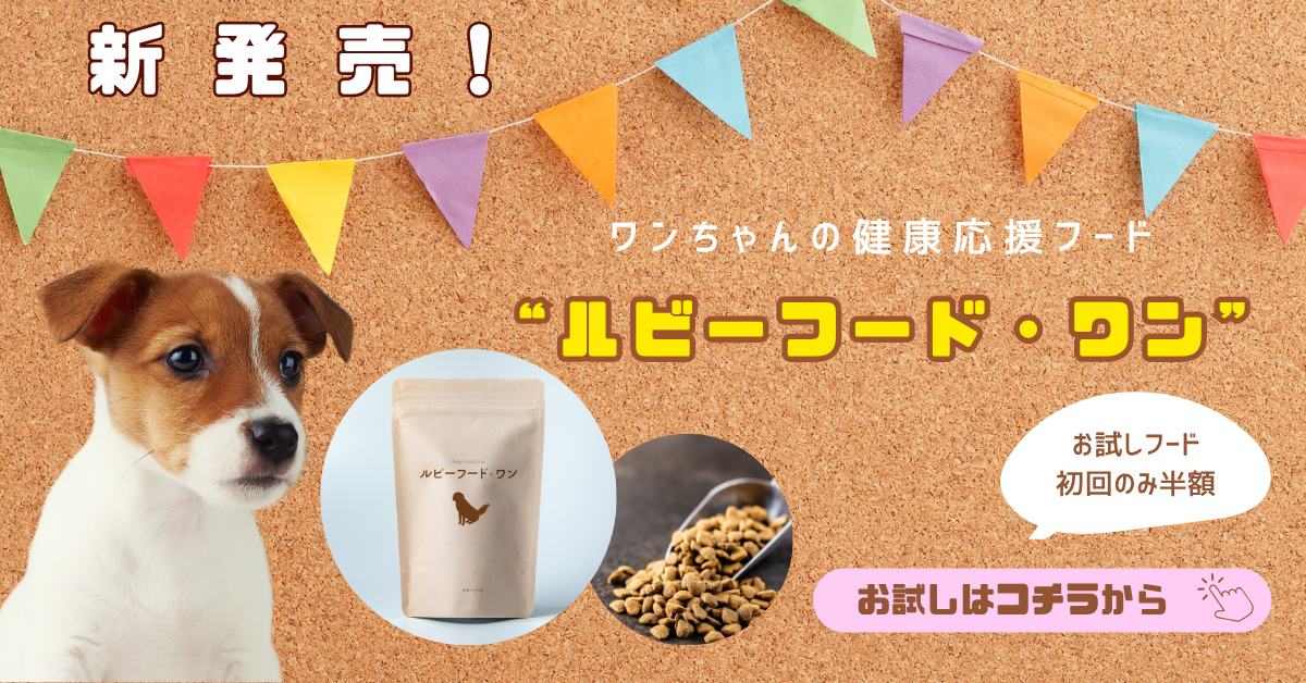 ワンちゃんの健康管理に特化したフード「ルビーフード・ワン」のLP誘導バナーです。