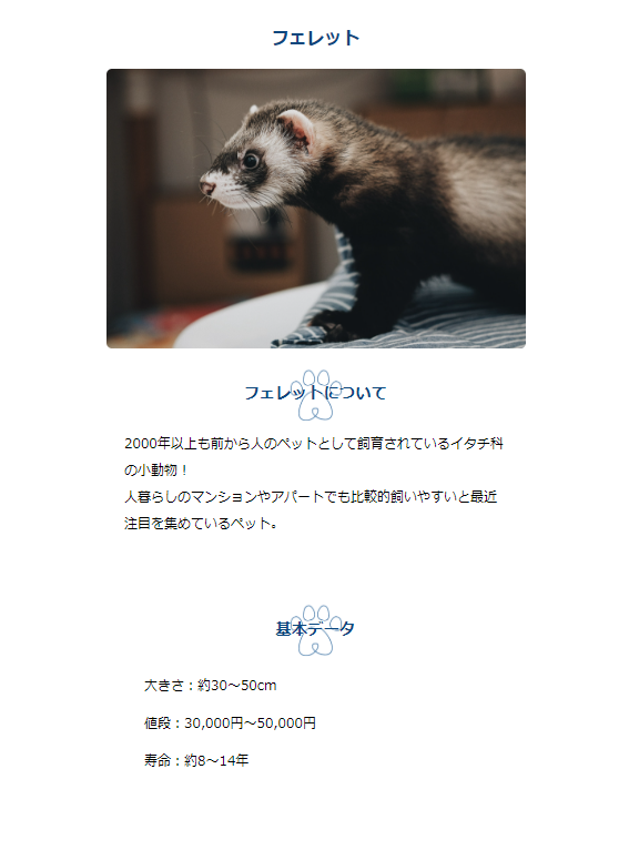 動物の魅力や生体ならではの特徴、かかりやすい病気などが確認でき、お迎えする前の「知らなかった」を減らせるような項目を並べました。