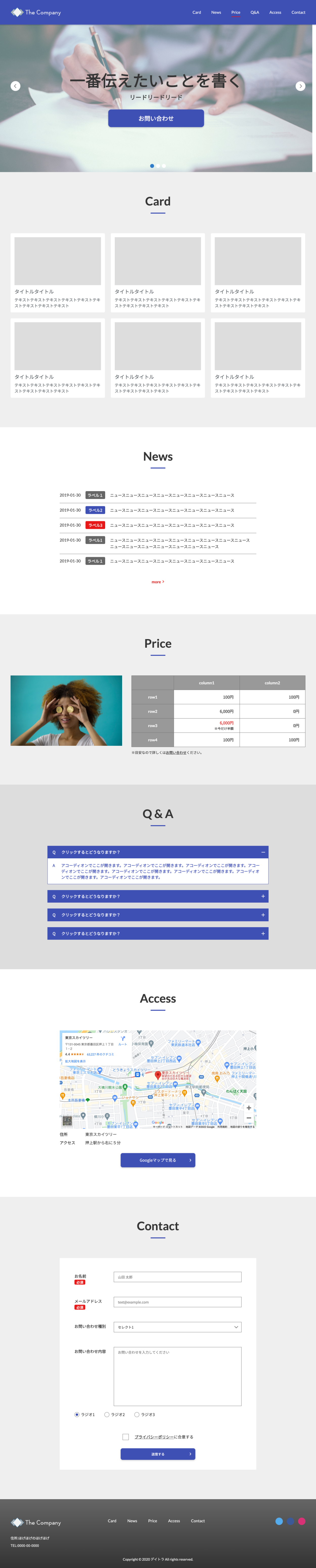 スライダーやモーダルポップアップ、アコーディオンなど動きを付けています。