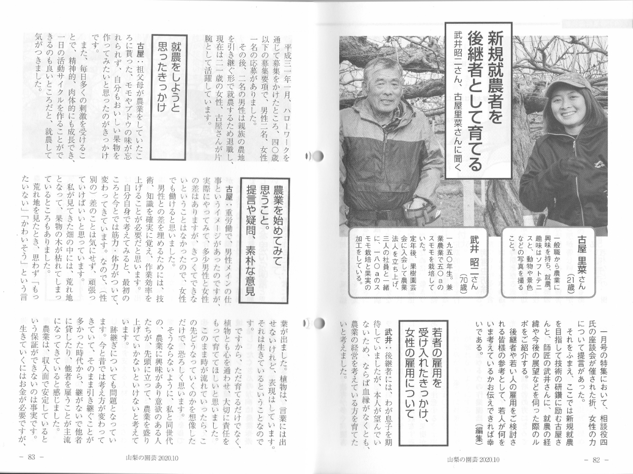 公益社団法人 山梨県果樹園芸会が発行する果樹専門月刊誌「山梨の園芸」の誌面デザインを2019年より担当しております。