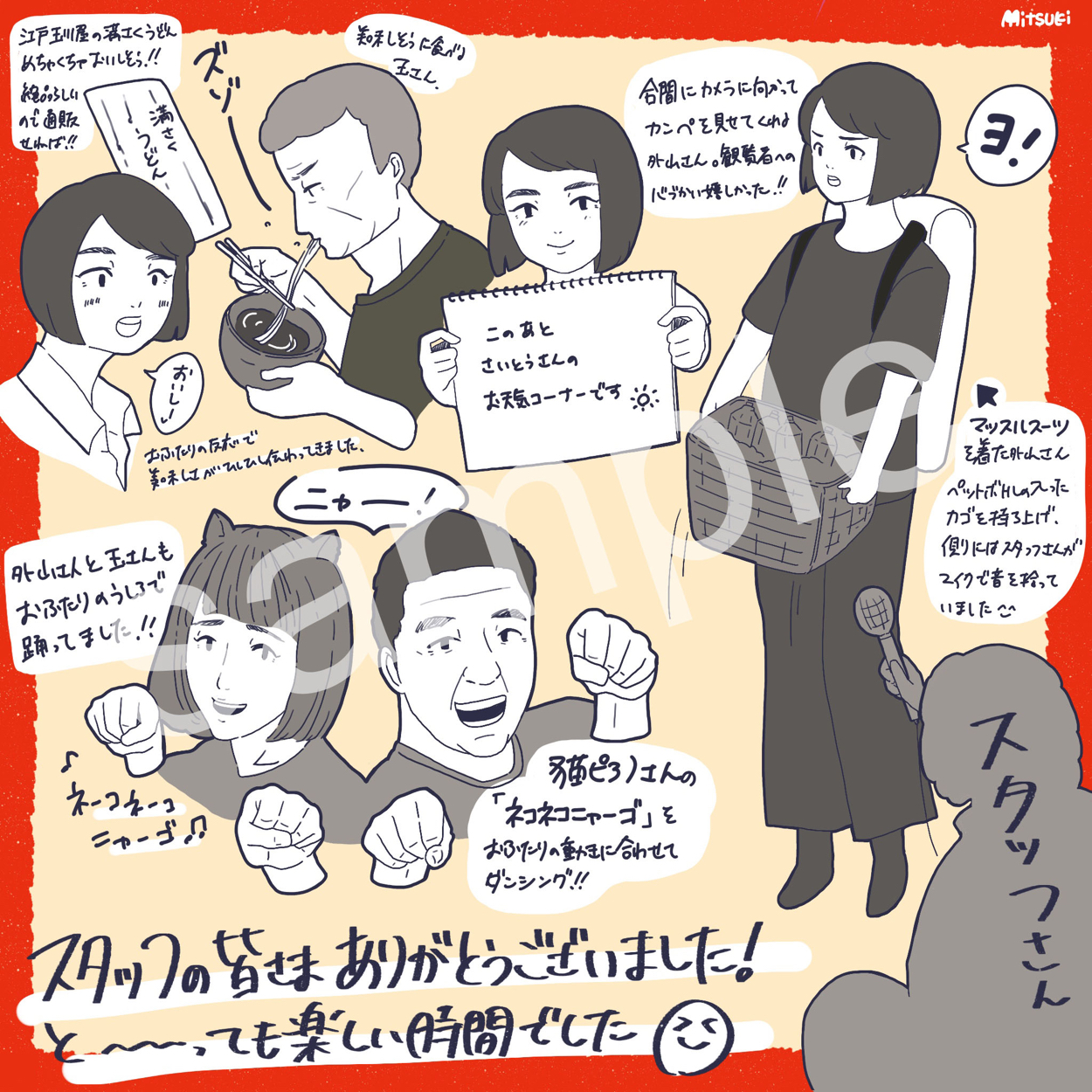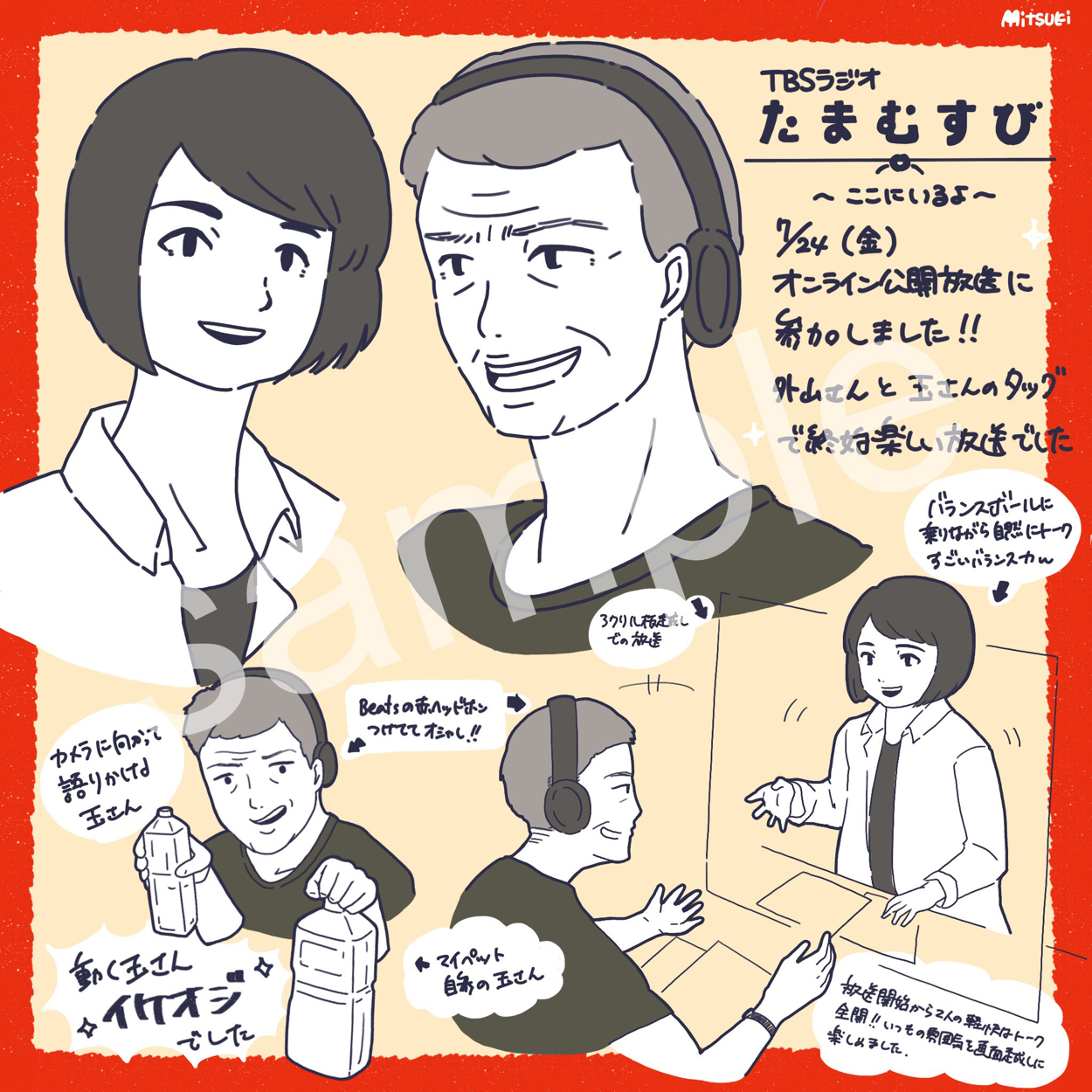ゆるいタッチのイラストでイベント・映画紹介 ミツキ・ラム イラストレーター&デザイナー OVERVIEW 個人制作 YEAR 2020 制作時期:2020年7月制作期間:3日ほどイベントの観覧模様をイラストにまとめ、twitter上で発信しています。