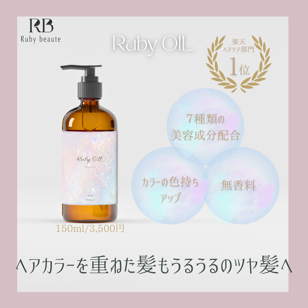 Ruby OILはヘアカラーを楽しむ方のお悩みに寄り添ったヘアオイルとして開発されました。