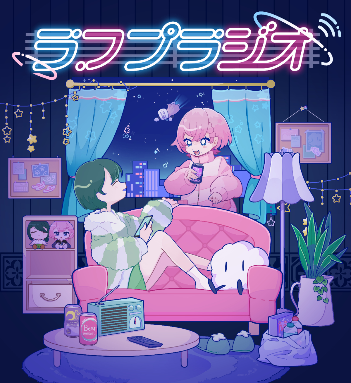 制作期間:約1ヶ月 天瀬モモ様・澄様のお二人によるふたり組ユニット『ラフプラ』にて配信されている『ラフプラジオ』のキービジュアルを制作させていただきました