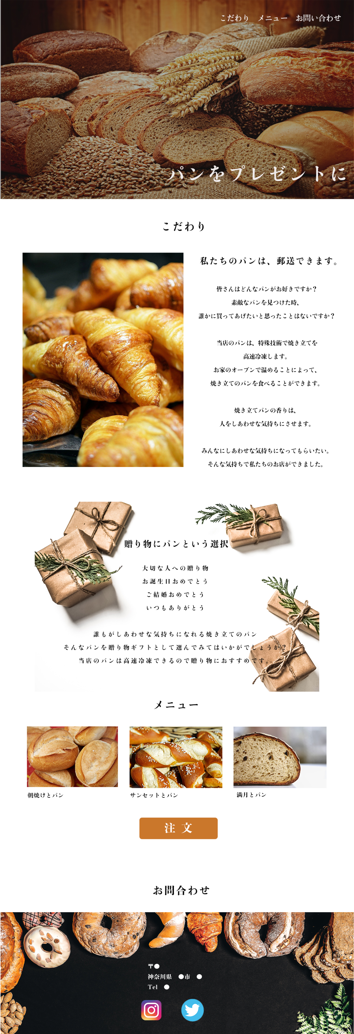 「パンをプレゼントする」という切り口でwebサイトを制作しました。