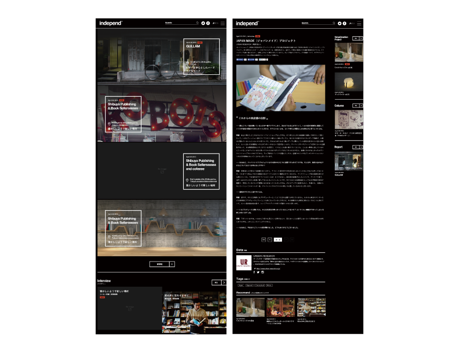 independ.tokyo Iori Nakamura デザイナー OVERVIEW WEBメディア「independ」のデザイン/ディレクションを行いました。 ※サービス終了 YEAR 2014 - 2015