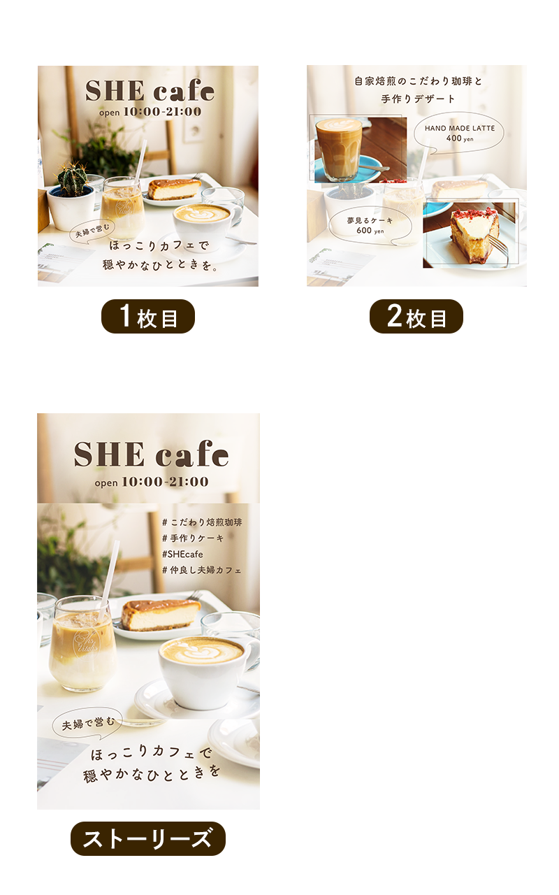<テーマ>ご夫婦で経営しているカフェのInstagram投稿用画像