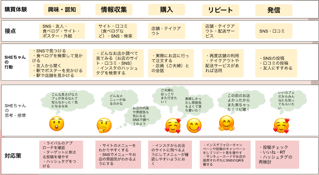 今回、カスタマージャーニーマップを作成し顧客購買心理を理解した上でInstagram投稿用画像の作成を行いました。