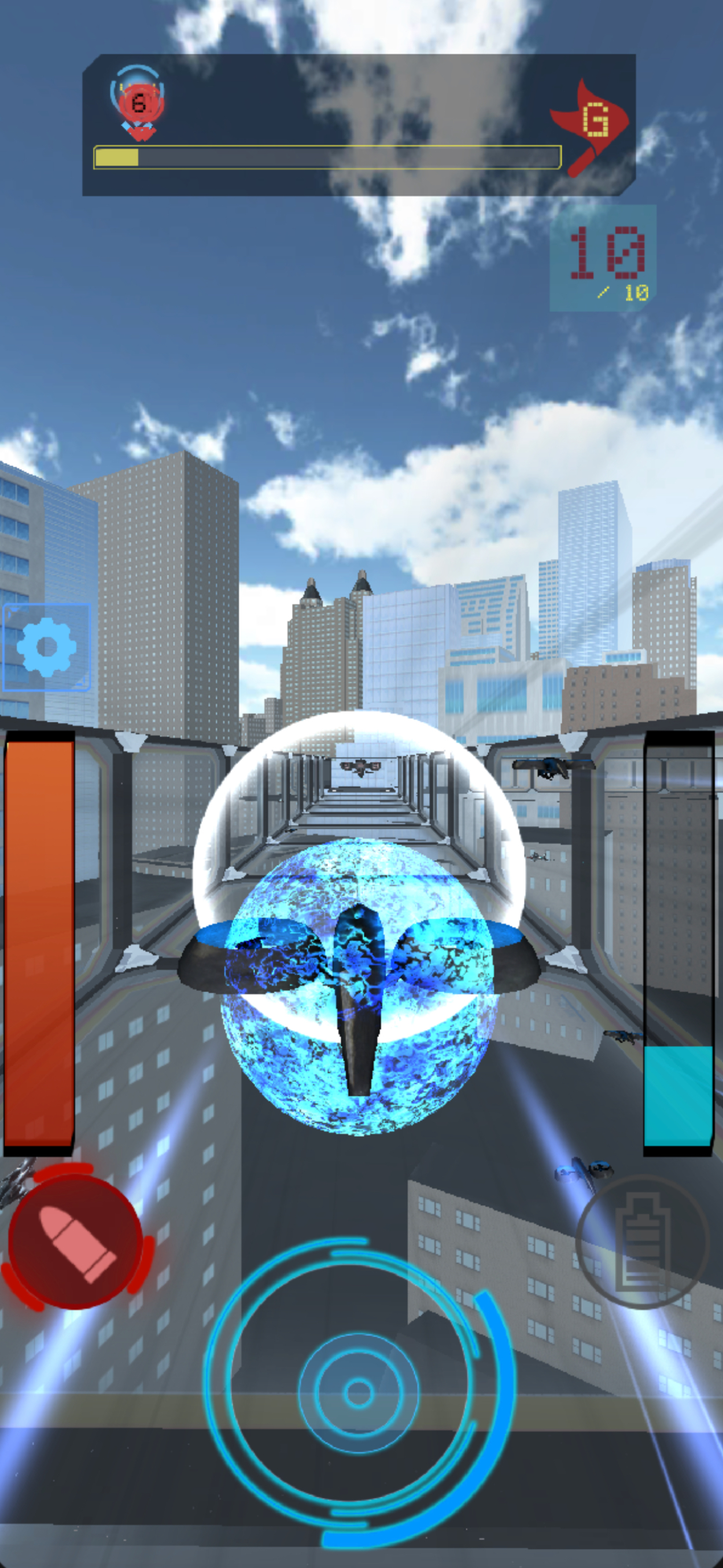 「ショット」正面にバレットを発射 機体に当たると失速 タレットに当たると破壊
