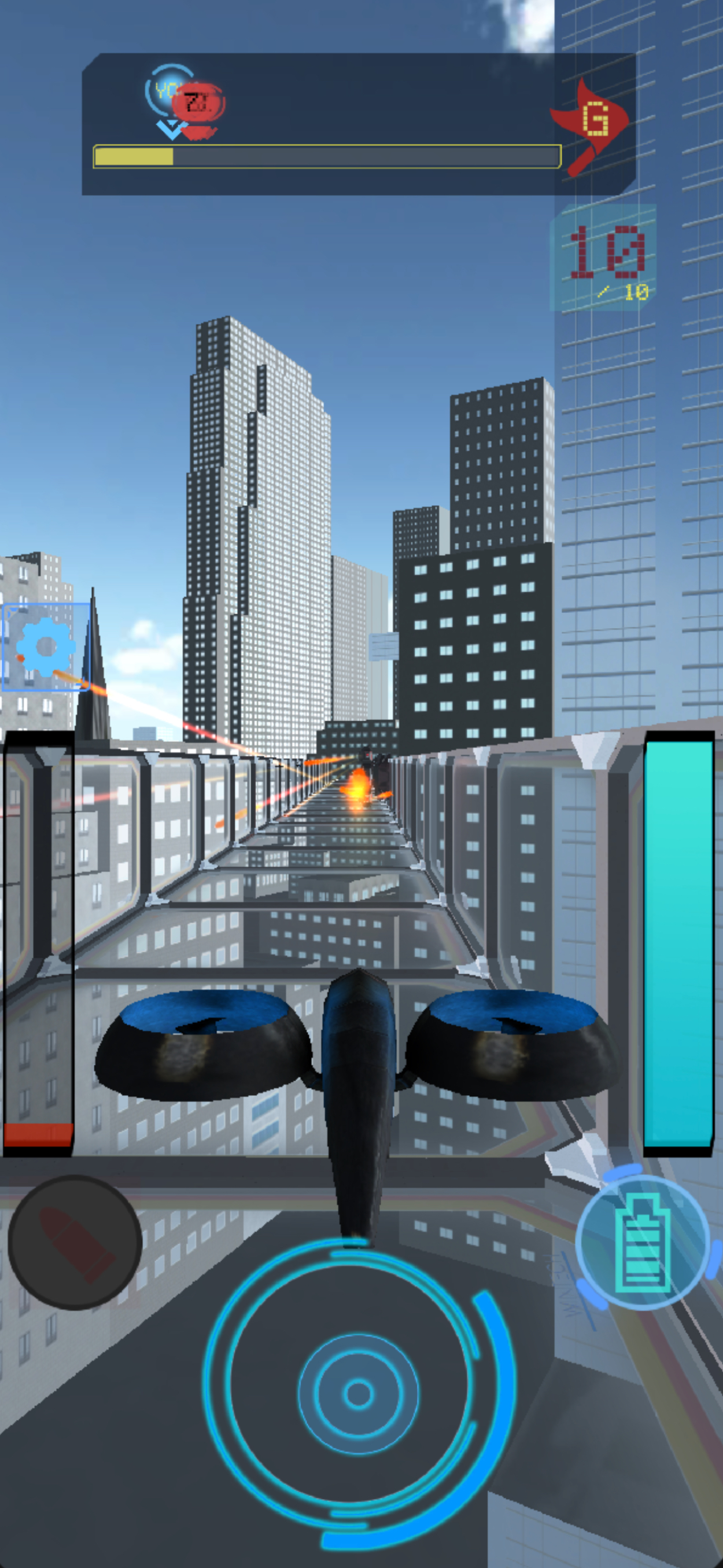 タレットやビームに当たると機体の動きが一時的に止まる