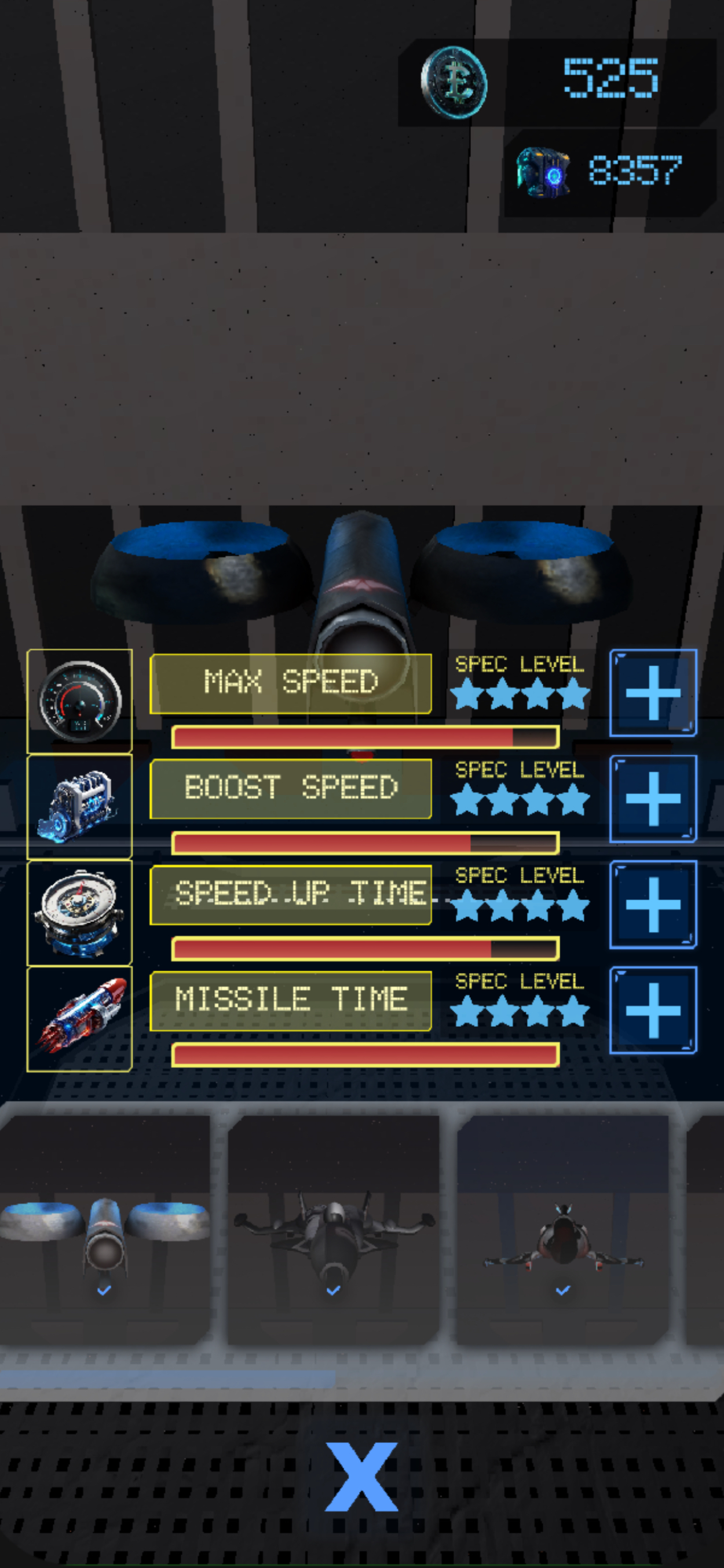 新たな個性がある機体を購入または、上記の要素を強化し、スピードや強さが上がるレースを戦っていく