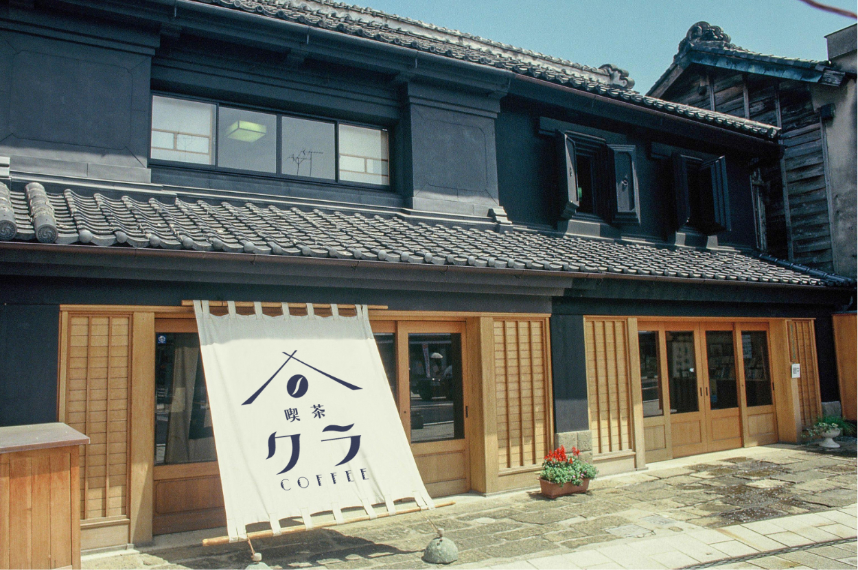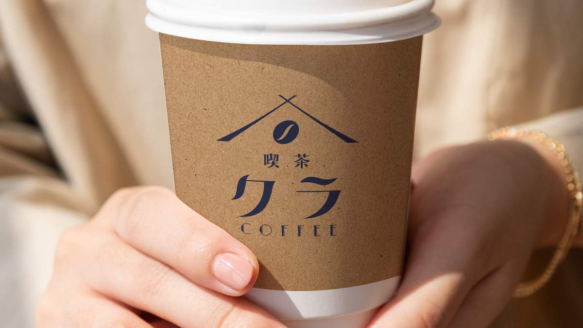 S字曲線や極端に細い横線など当時の図案文字を参考にしながら大正ロマン感を表現。特徴的な蔵の屋根や蔵飾りをコーヒー豆にして蔵喫茶らしさを。