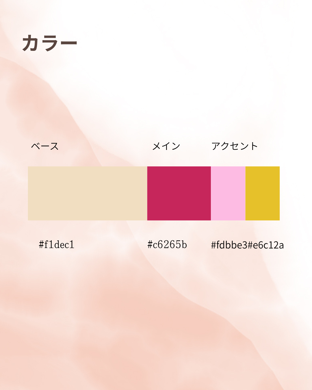 ・カラー:女性らしさのある感じを出すためにピンク系を使用しました。