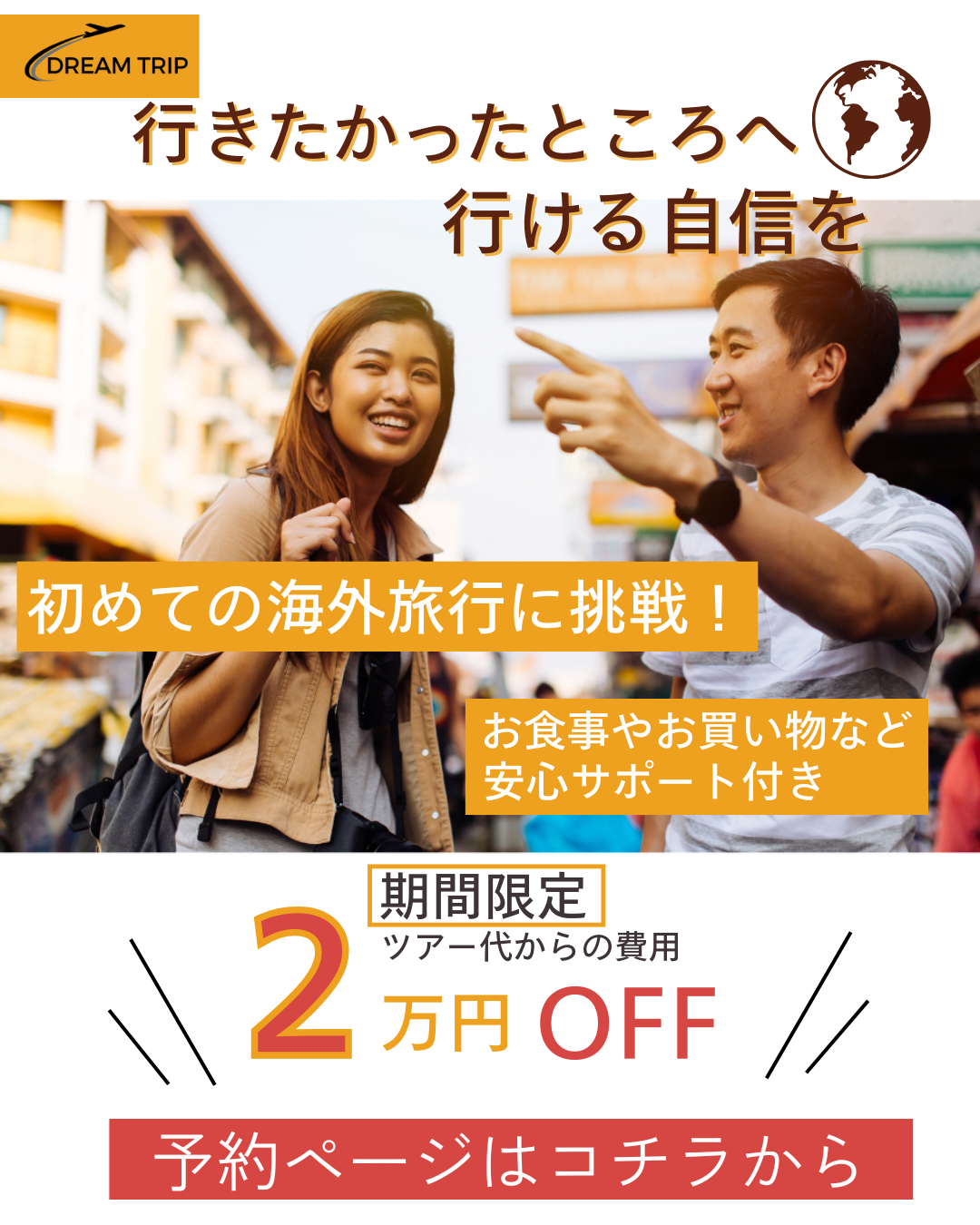 初めての海外旅行をサポートするクライアントさんなので、旅のワクワク感を演出できるようなデザインでターゲットが興味を引くように、シンプルで訴求できる素材を選びました。