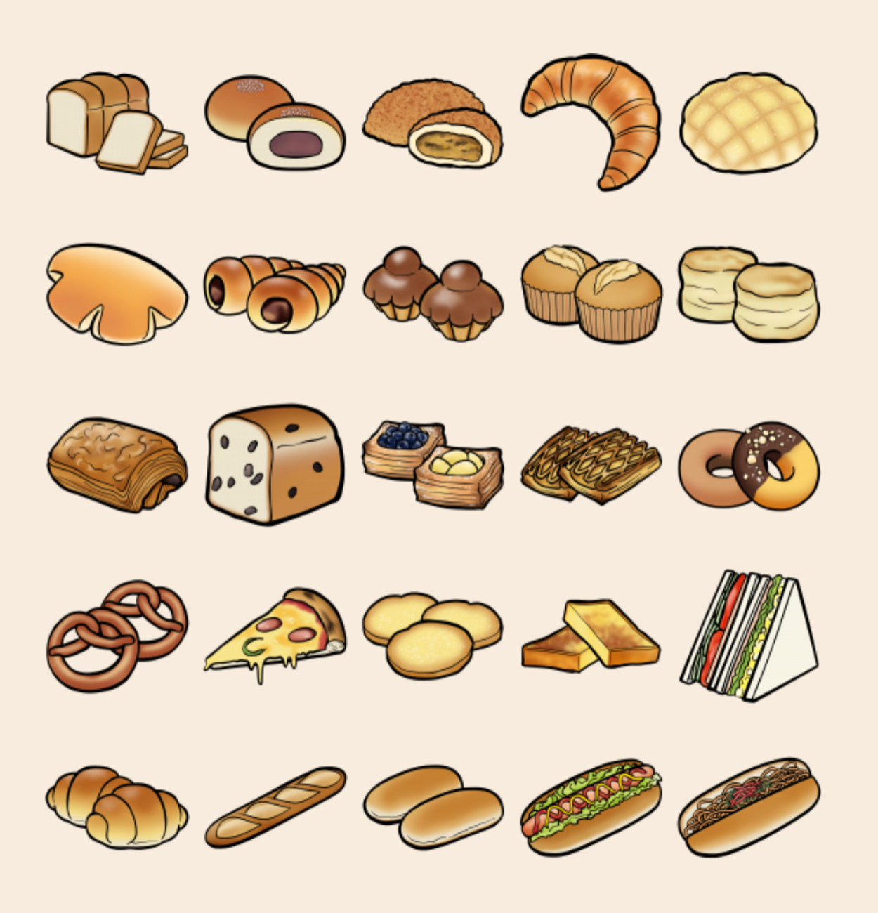 POPKIT株式会社 イラストパーツ制作 宇津木志加@イラストレーター イラストレーター OVERVIEW POP制作アプリ「POPKIT」のパーツイラストを制作させて頂きました。テーマはパン屋さんです。お客様がPOPを作りやすいように、たくさんの種類のパンを描きました。 YEAR 2020 WEBSITE
