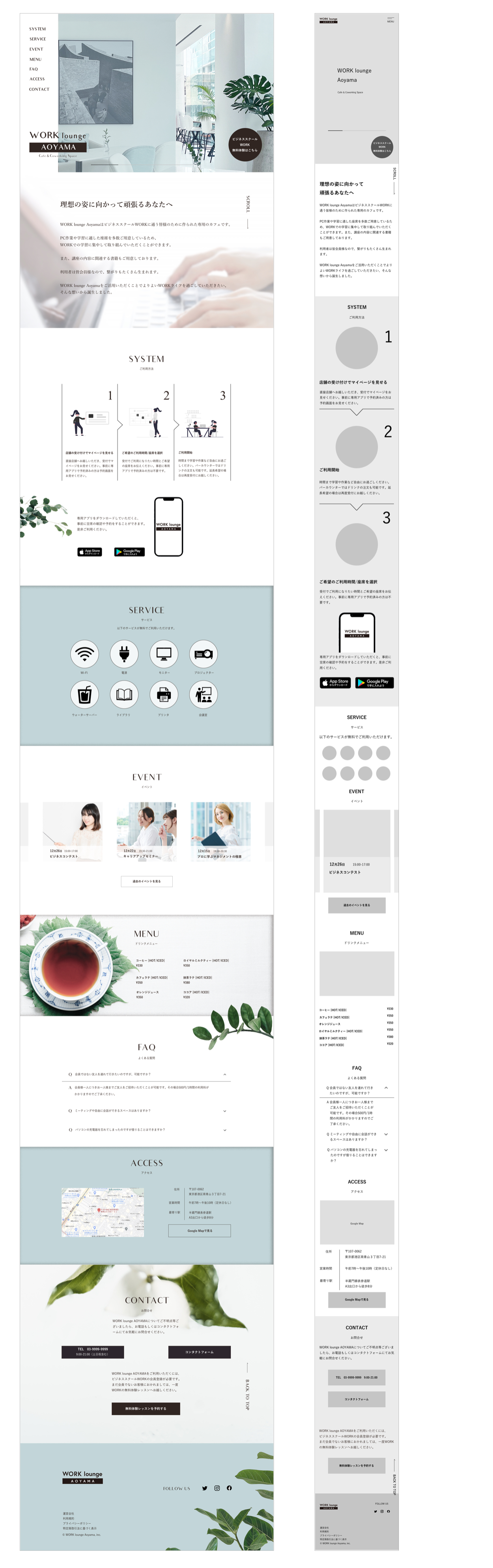 元のワイヤーフレームから、多忙なユーザーに離脱されにくいサイトになるよう無駄を省く=引き算と、ユーザーが求めているであろう情報を加える=足し算のバランスを意識して情報設計しました。実装を想定したシンプルなレイアウトで、フォントサイズや余白に統一性を持たせながらも、植物の素材を大胆に使用してオリジナリティを追求しました。