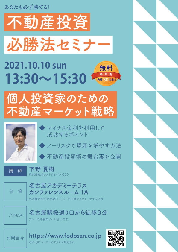 不動産セミナーチラシ Ver.02 k_keiko デザイナー・運用ディレクター OVERVIEW ポートフォリオ用に作成したチラシです。 YEAR 2021 【制作日】2021年10月【制作期間】3日【ポイント】ターゲットは不動産投資に興味を持ち始めた20代後半~30代前半の方。気軽にセミナーに参加して頂けるようにポップな色遣いと、フォントを使用した。