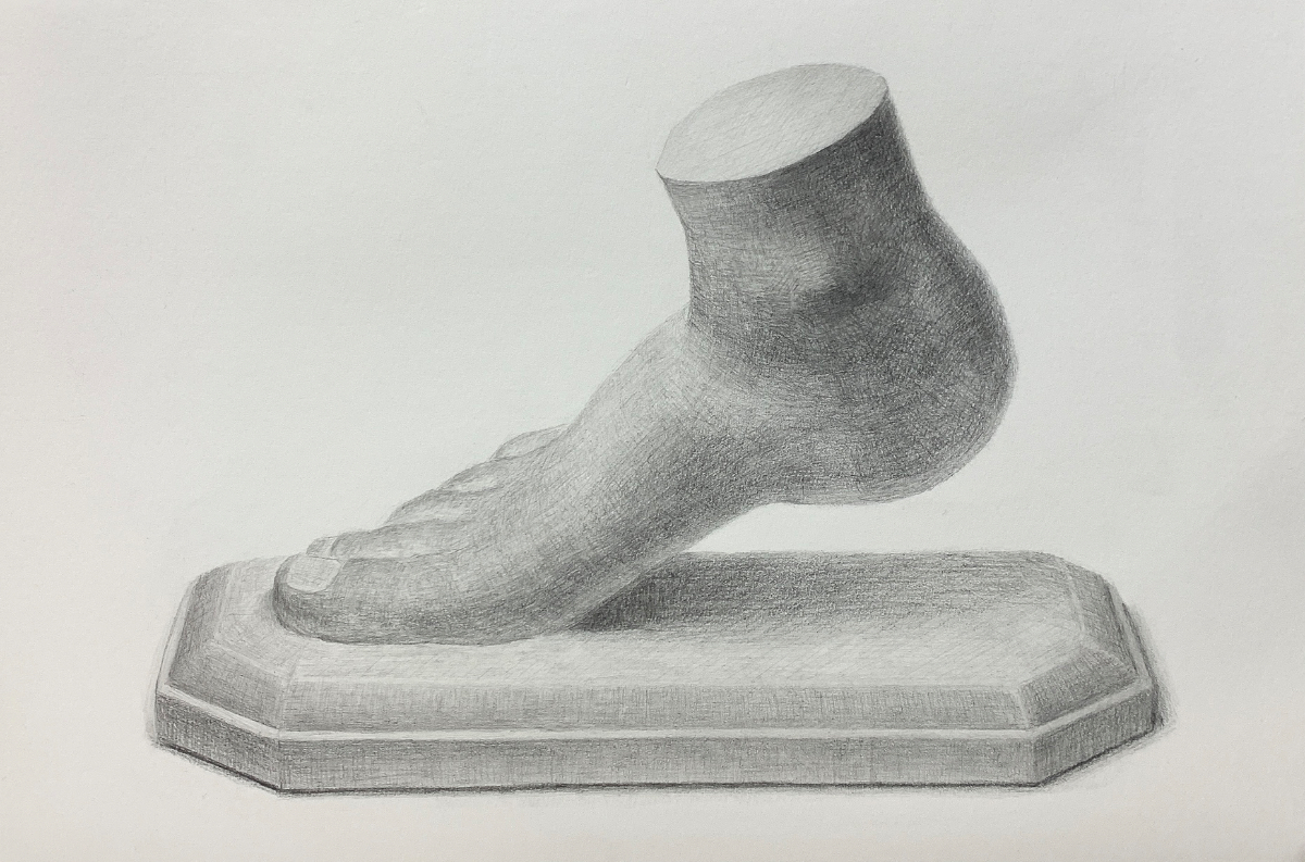 形の正確さと面の流れを意識しながら、足の構造を丁寧に観察して描きました。