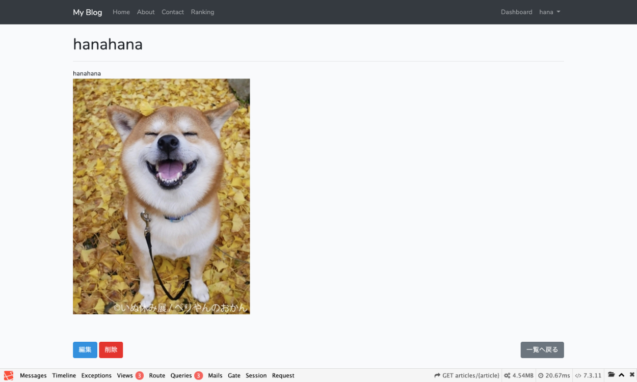 追加機能として投稿から画像アップロードができるようにし、画像の編集や削除もできるようにしています。