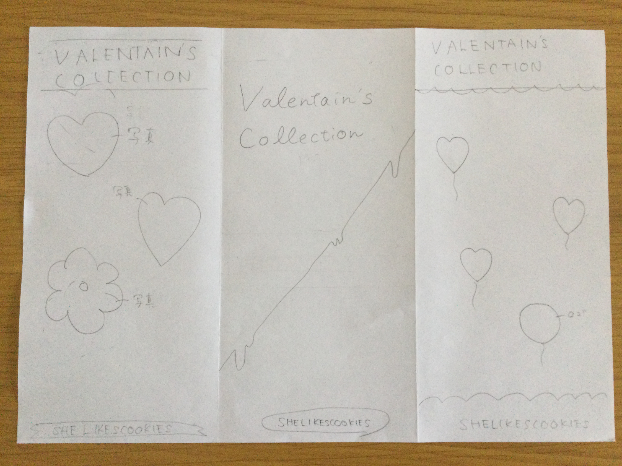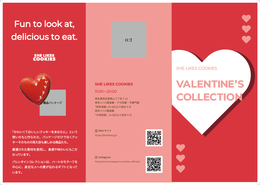 - バレンタイン用に3つ限定商品を出すので、その告知用のパンフレットを作ってほしい