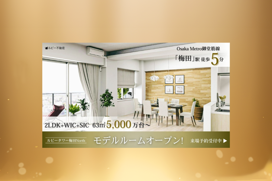 ・モデルルームオープンの背景をゴールドのグラデーションにし高級感あふれる仕様にしました。