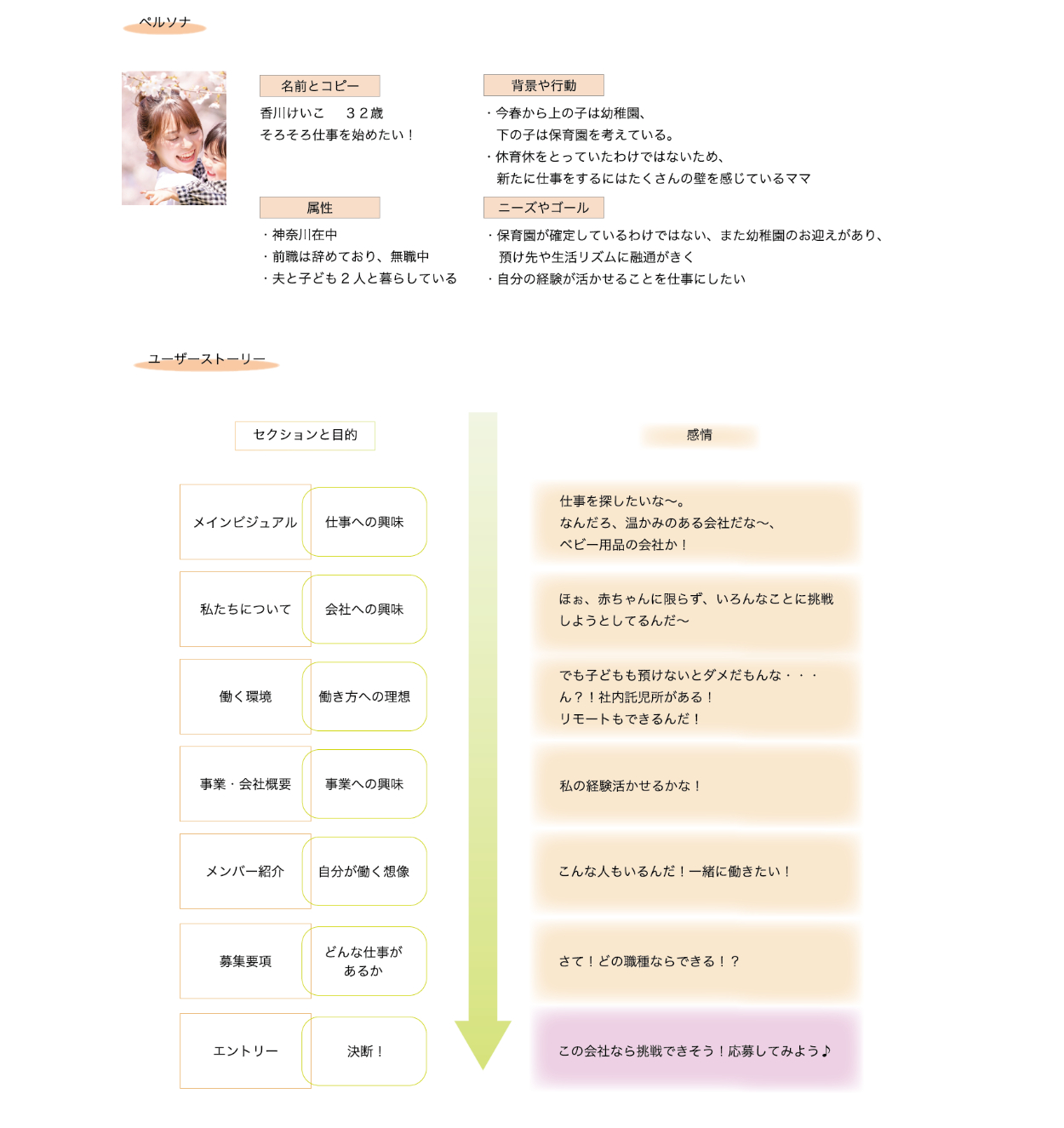 ・要件定義をもとに、ペルソナの設定、ユーザーストーリーを作成しました。