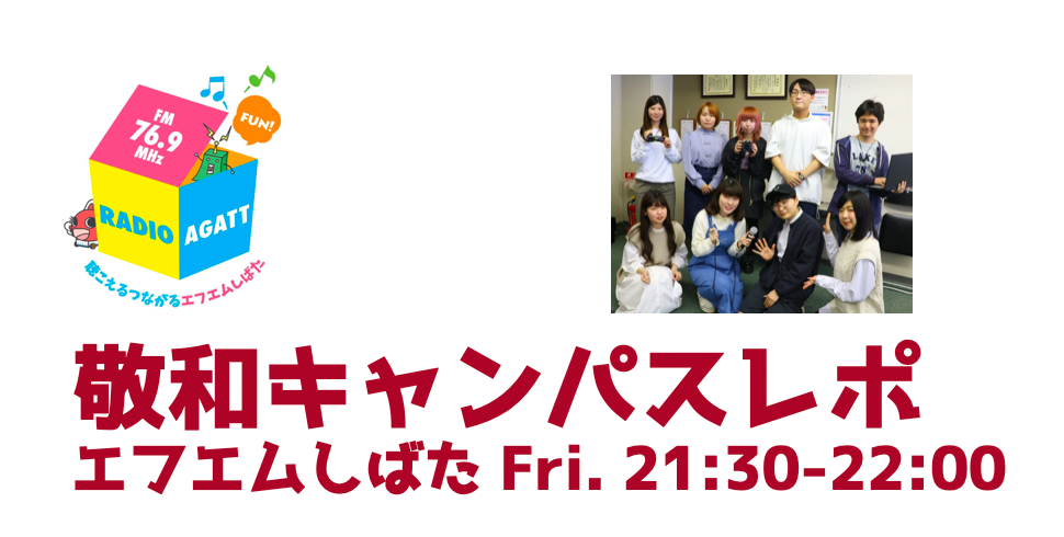 敬和学園大学の学生が、大学に関わるイベントや人、新発田のことをテーマにお届けする30分番組。毎週金曜日21:30-22:00の放送。 https://note.com/keiwacampus/