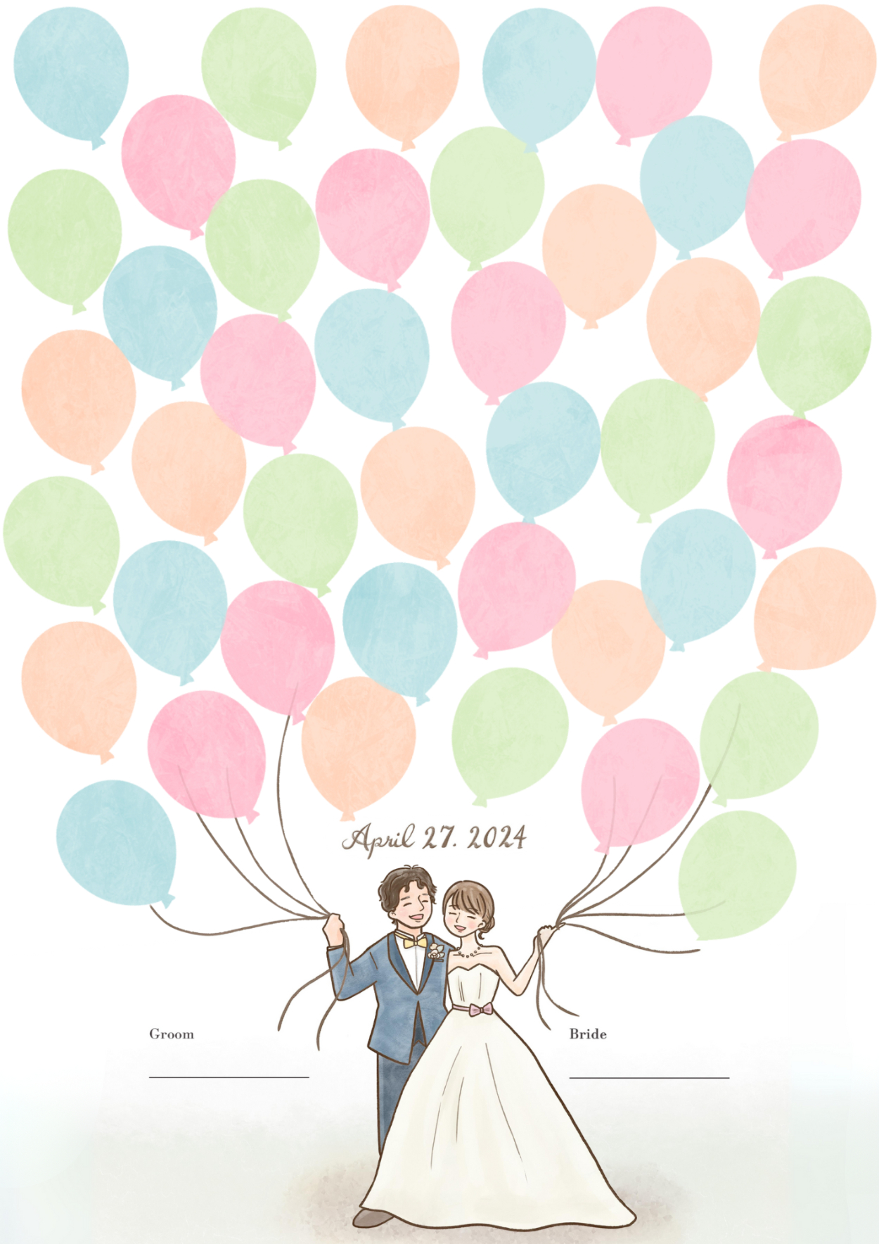 【自主制作】ウェルカムボード maki.m デザイナー / アートディレクター / イラストレーター OVERVIEW 知人の結婚式に使うウェルカムボードを制作しました。[制作時間:20時間 / 制作期間:14日間 / 使用ツール:Procreate] YEAR 2024 ▼要件白 × カラフルな色味A3ポスター印刷ゲストが風船のシールを貼れるようにしたい新郎新婦が名前を記入する欄を設けたい額縁に入れて飾りたい