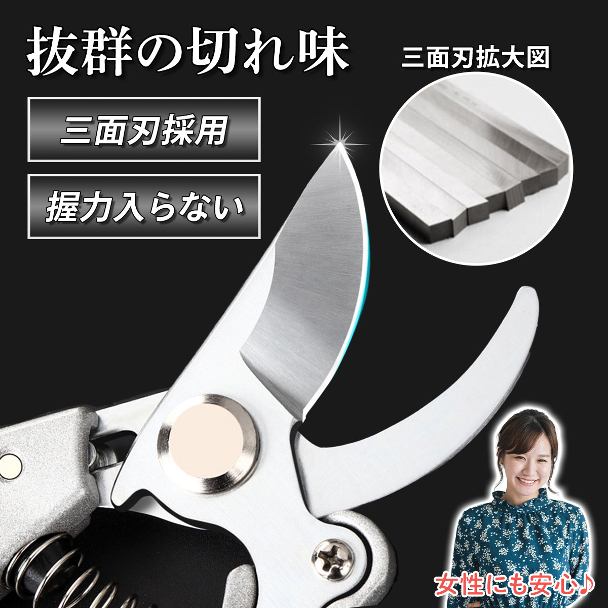 剪定バサミの商品画像 yoko フリーランスWebデザイナー ヤフーショッピングで使用される猫用ハーネスの構成、商品画像を制作ターゲット:40代〜50代 男性女性 使用ツール:Photoshop・Illustrator