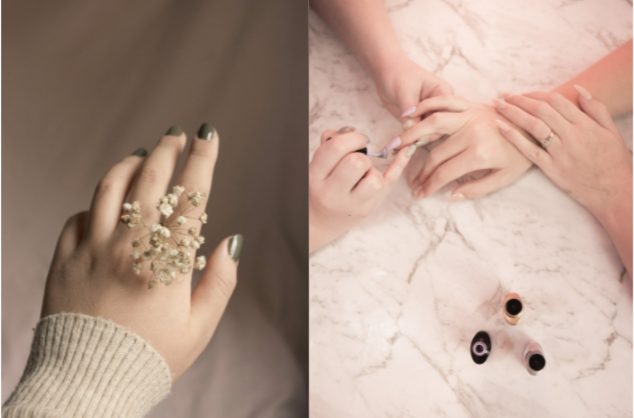 ネイルのアート性と華やかさを表現するためにマーブル模様の画像を使用。