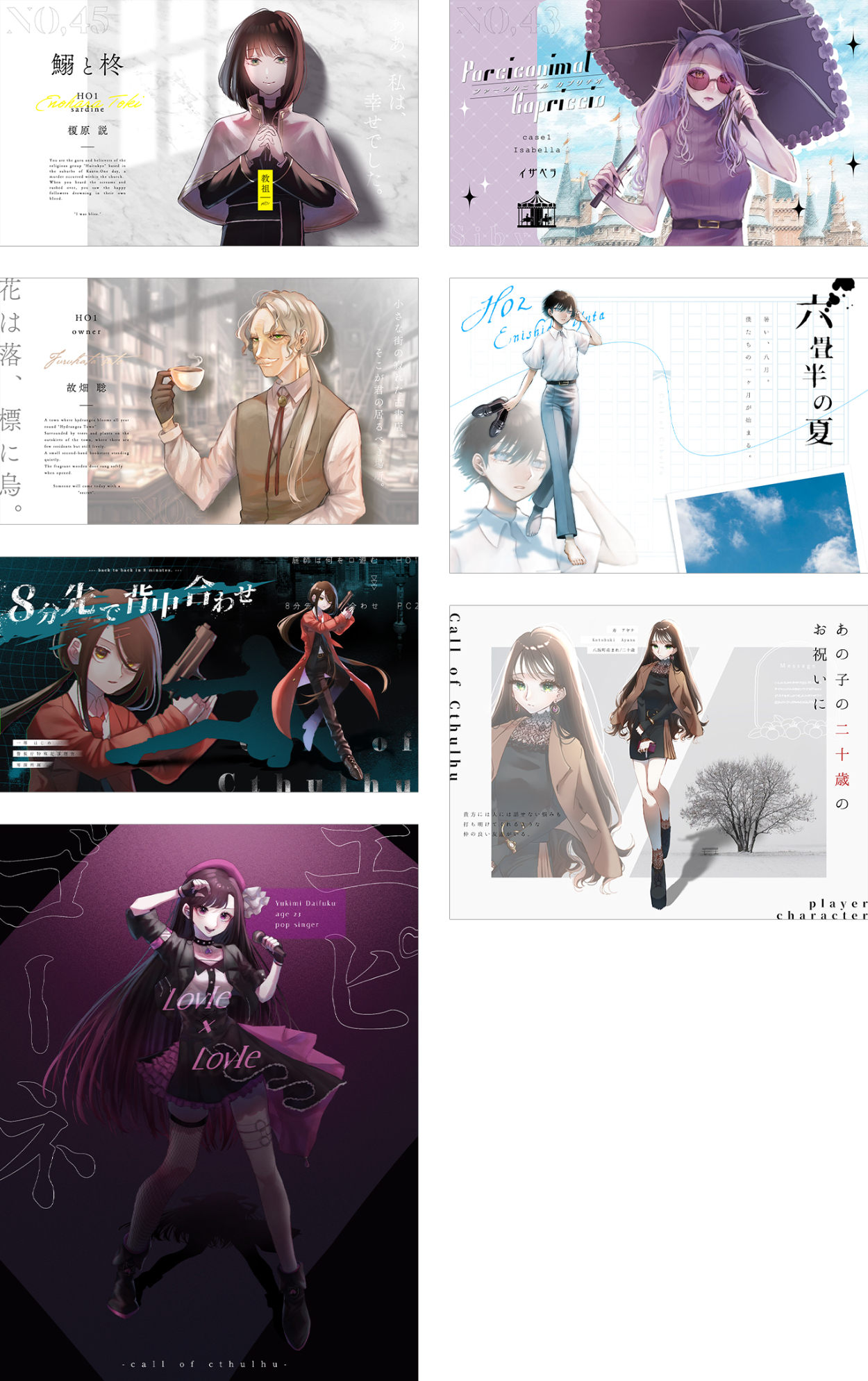 趣味でイラストを描いています。10~20代の女性と男子学生をよく描きます。 立ち絵のほか、温度感を感じられるイラストが好きです。