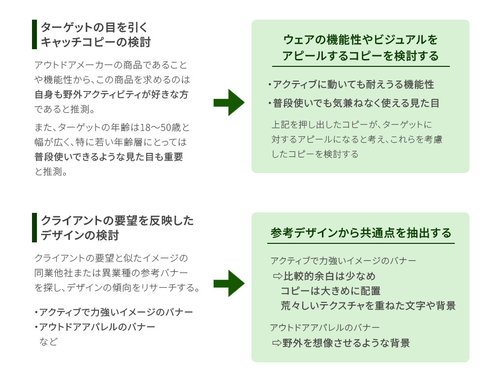またクライアントの要望を反映したデザインにするため、参考バナーからデザインの傾向をリサーチしました。