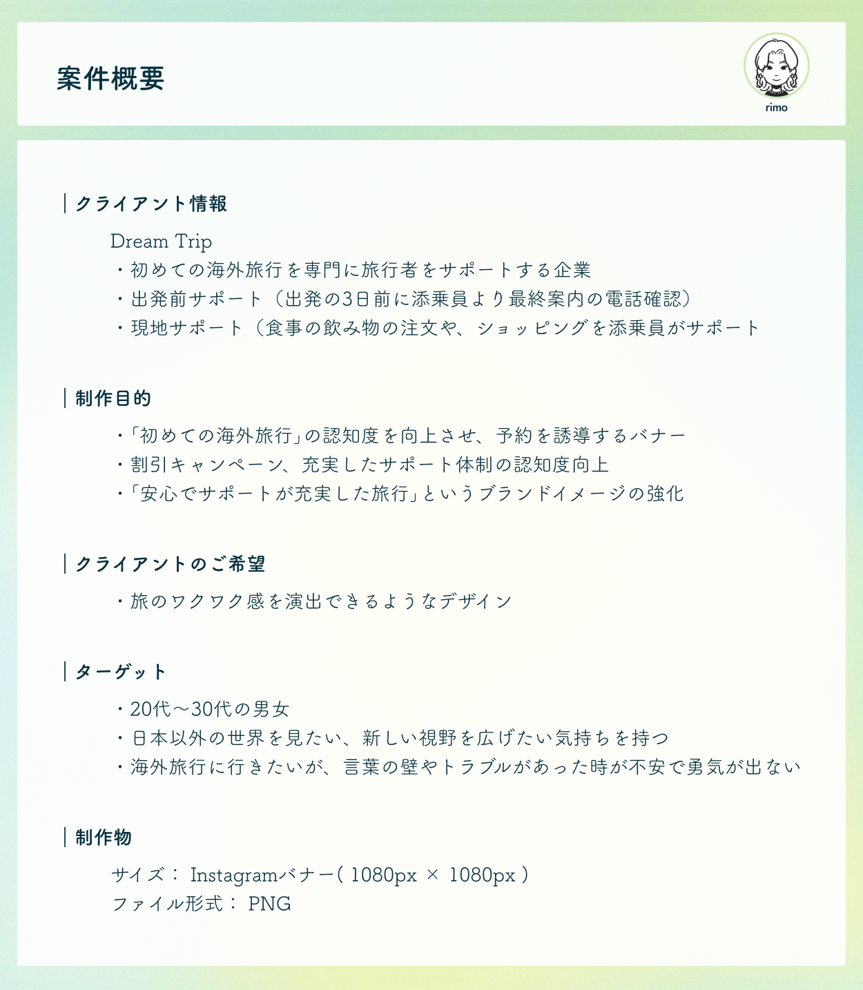 【架空案件】 「初めての海外旅行ツアー」 予約誘導バナー。 使用ツール Figma 、バナーサイズ 1080px × 1080px 、掲載媒体 Instagram、制作時間 5時間 、制作日 2024/8。