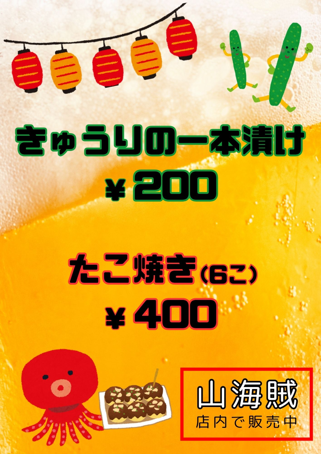 【おつまみデザイン①】お祭りには地域の子供たちもたくさん来るため、親しみやすくてかわいらしいいらすとやの素材を使用しました。