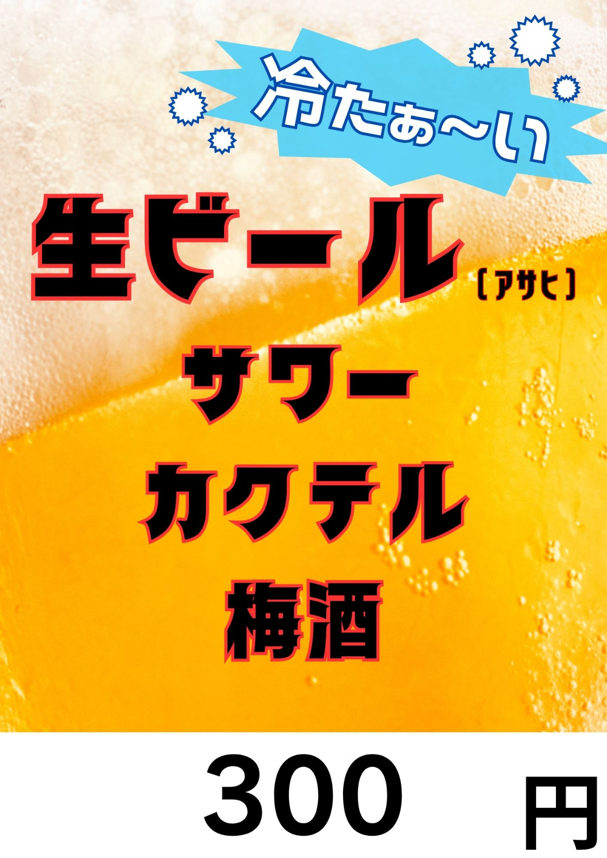 【ドリンクデザイン①】夏の暑さの中で飲む冷たいお酒の美味しさと刺激をイメージし、サーバーから出す生ビールが売りだったので生ビールがメインになるようデザインしました。