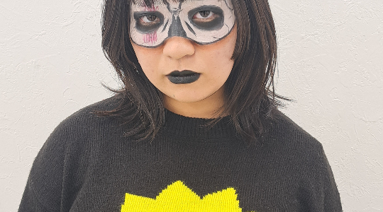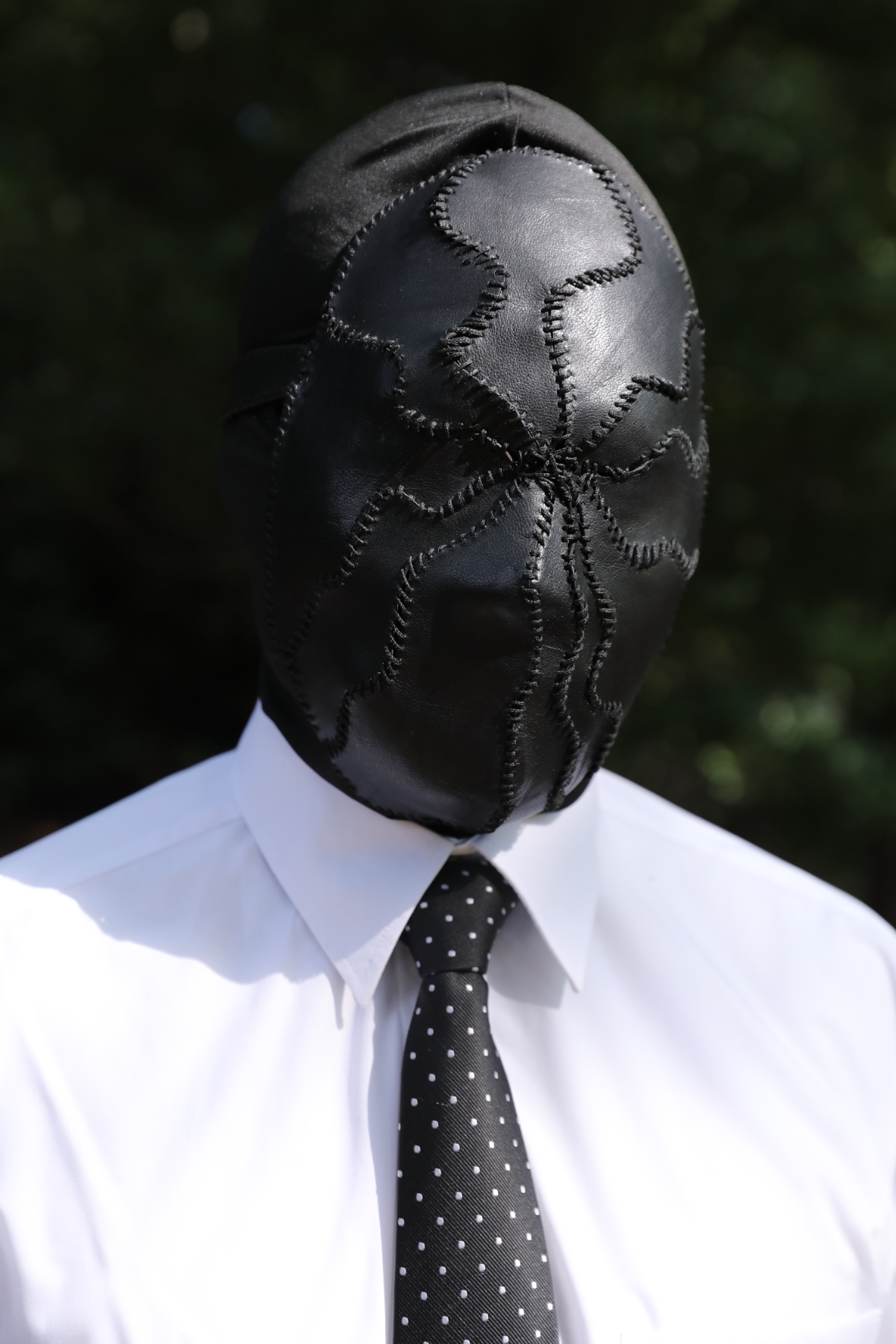 虚偽 田中 特殊メイク学科一年 OVERVIEW ラムレザーにてマスクの作成 YEAR 2024 石膏の型に合わせて革を選別し細かく制作した。目の部分は視覚を若干確保することが可能。機能性はやや低め。見た目重視。
