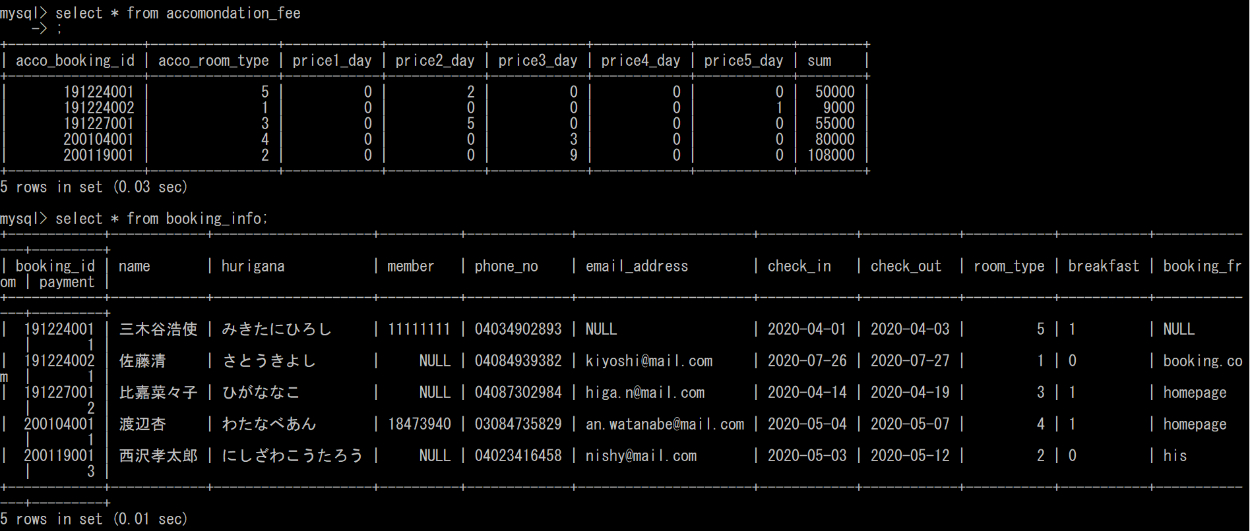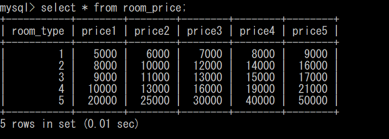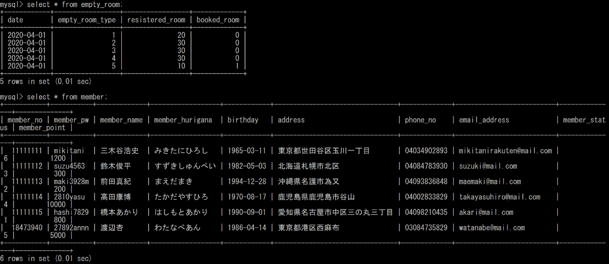 データの数は少なめですが、SQL上ではこのように表示されています。