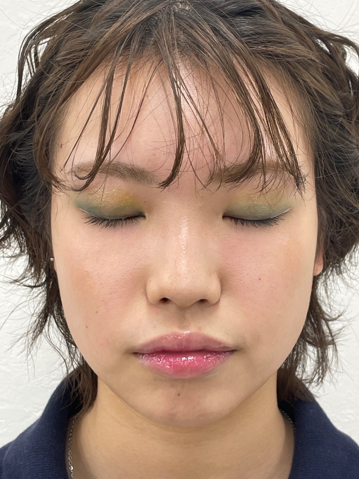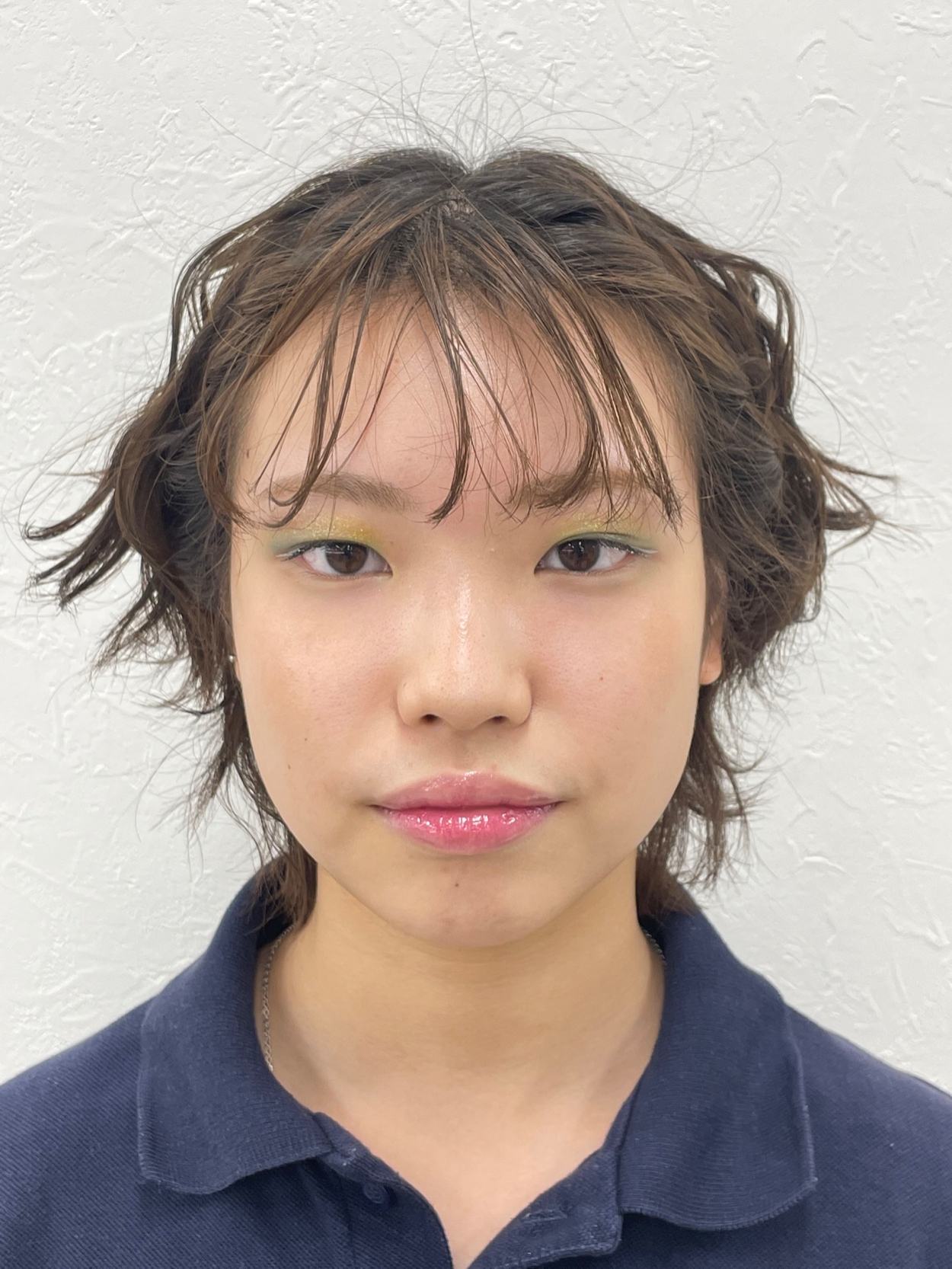 水から上がったマーメイドをイメージしました。写真では少し分かりづらいですが、アイシャドウやチーク部分にオイルを出して濡れ感を出し、リップはグロスを塗りました。